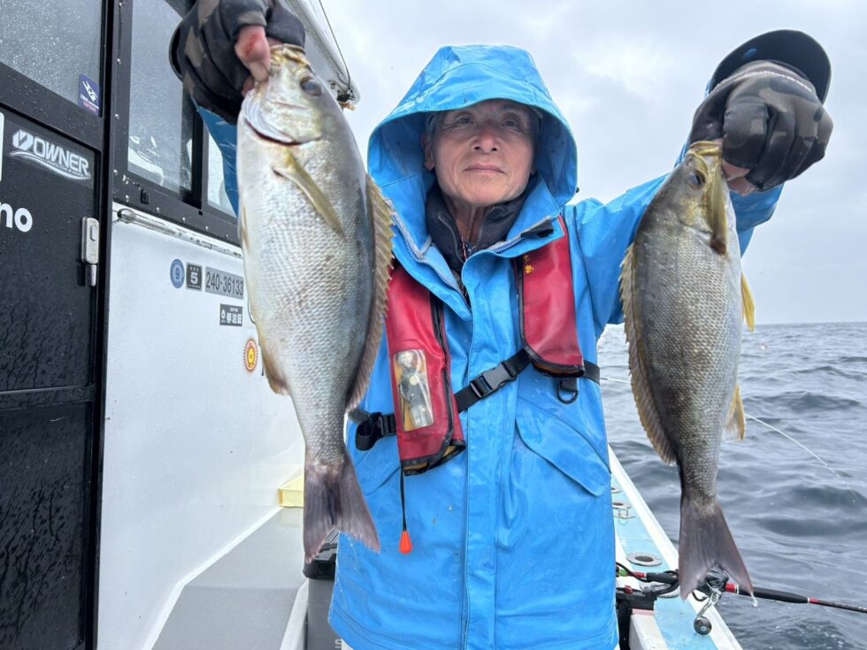 大型イサキ猛烈です!入れ食い堪能でしたよ。極少人数での出船でした、明日(金)も非常に楽しみな大山沖です!予約お待ちしてます