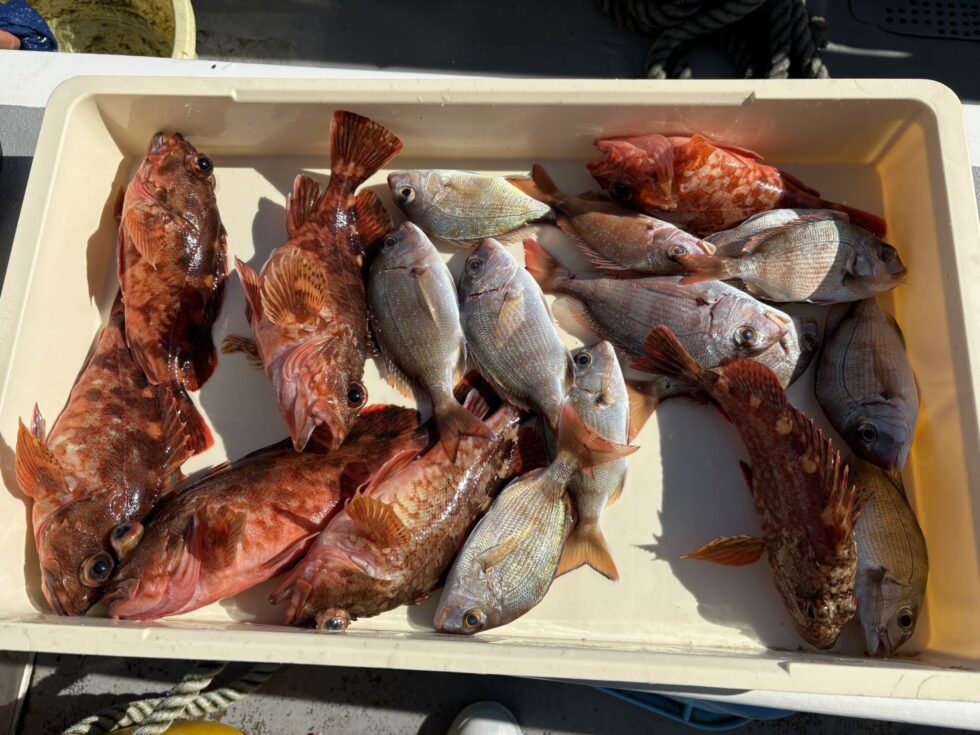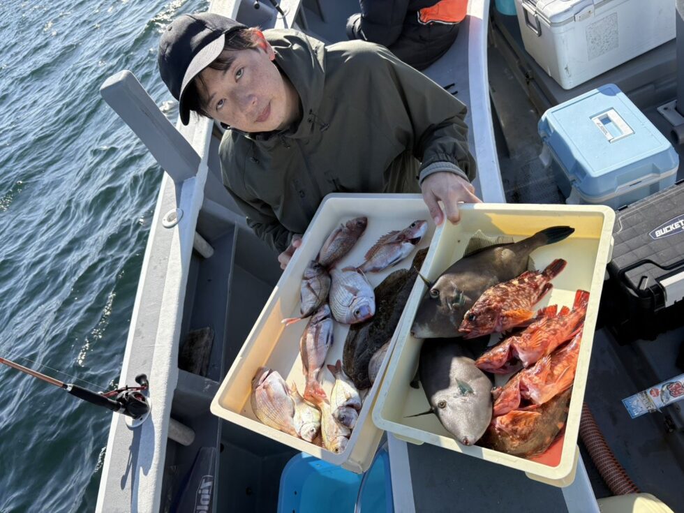 小鯛、ツバス、カワハギ、ウマヅラハギ、カサゴ