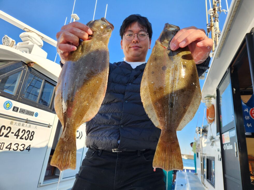 ヒラメ開幕!全員キャッチできました!今後楽しみな泳がせ釣りご予約受付中!