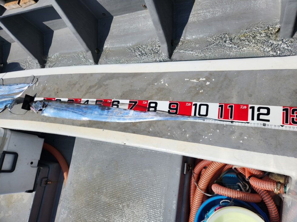 ゲーム性あり人気のテンヤタチウオ、しっかり誘ってアタリをだして下さい!