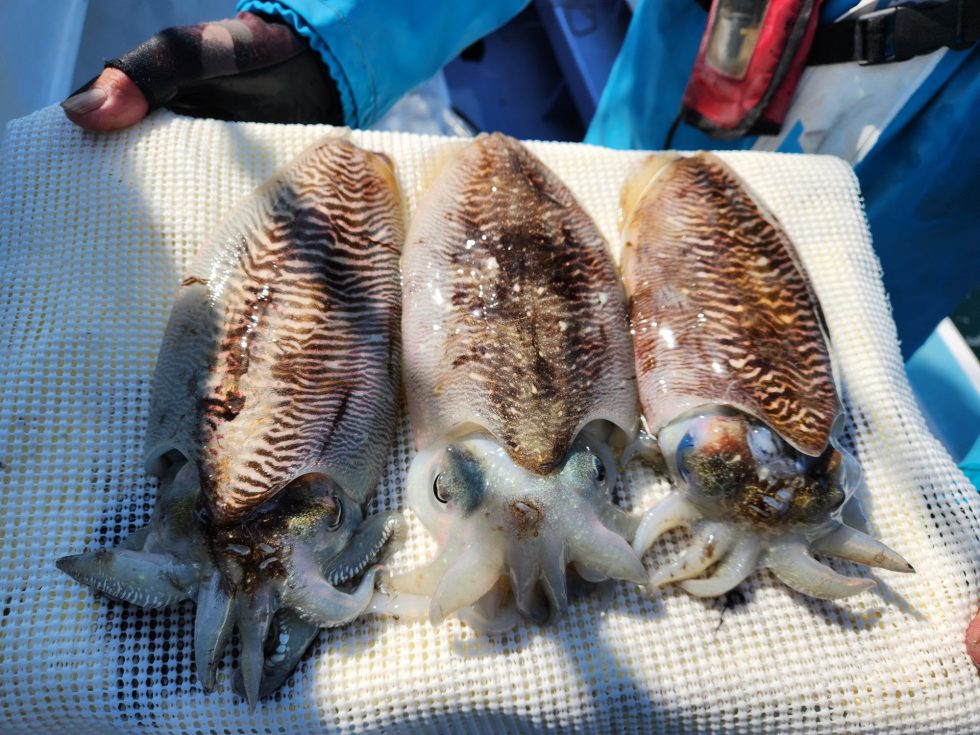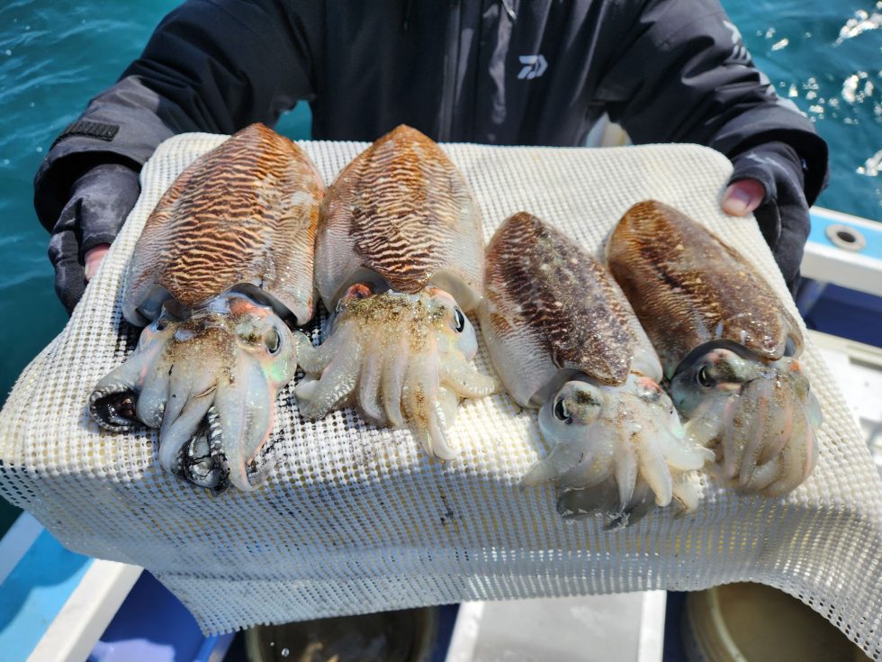 釣って良し、食べて良し、忠栄丸恒例コウイカ釣り、絶品につきリピーター続出中です!