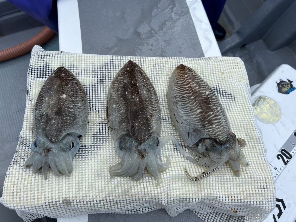 今日も朝の飛び入りの方もありで2隻分乗でゆったり釣行ありがとうございます。絶品コウイカ大型化してきてますよ!明日も楽しみですよ。