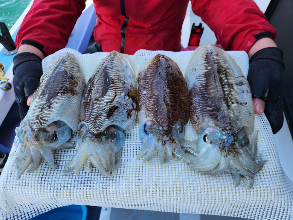 釣って良し、食べて良し、忠栄丸恒例コウイカ釣り、絶品につきリピーター続出中です!