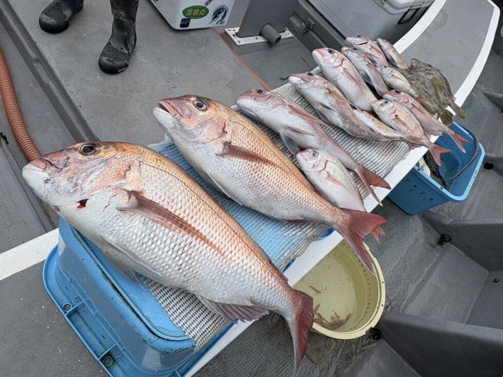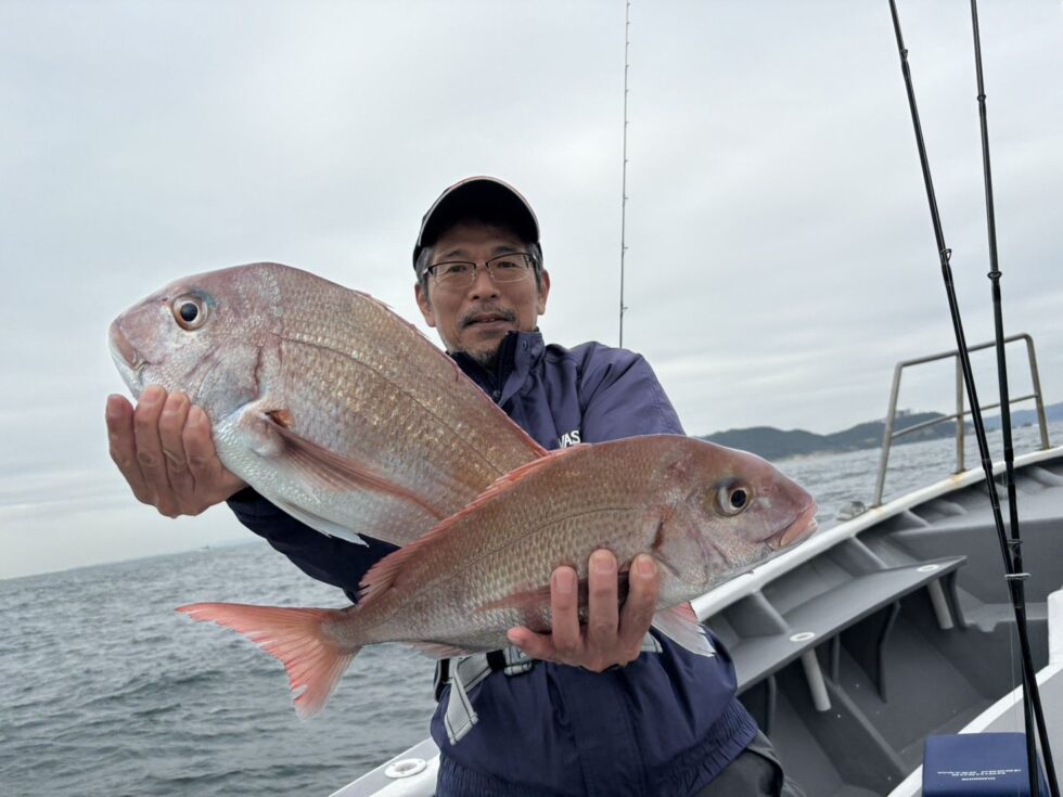 明日(水)一つテンヤ真鯛釣り出船確定!先日の写真です。