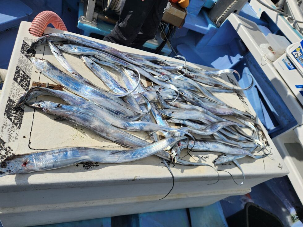 午後ショート便タチウオも出船中!午後便は港前釣行、伊良湖沖テンタチの練習にも是非!天秤仕掛け可(オモリ50号)サンマ餌1パック付(追加有料)、テンヤ可(テンヤ40~50号)イワシ餌販売あり