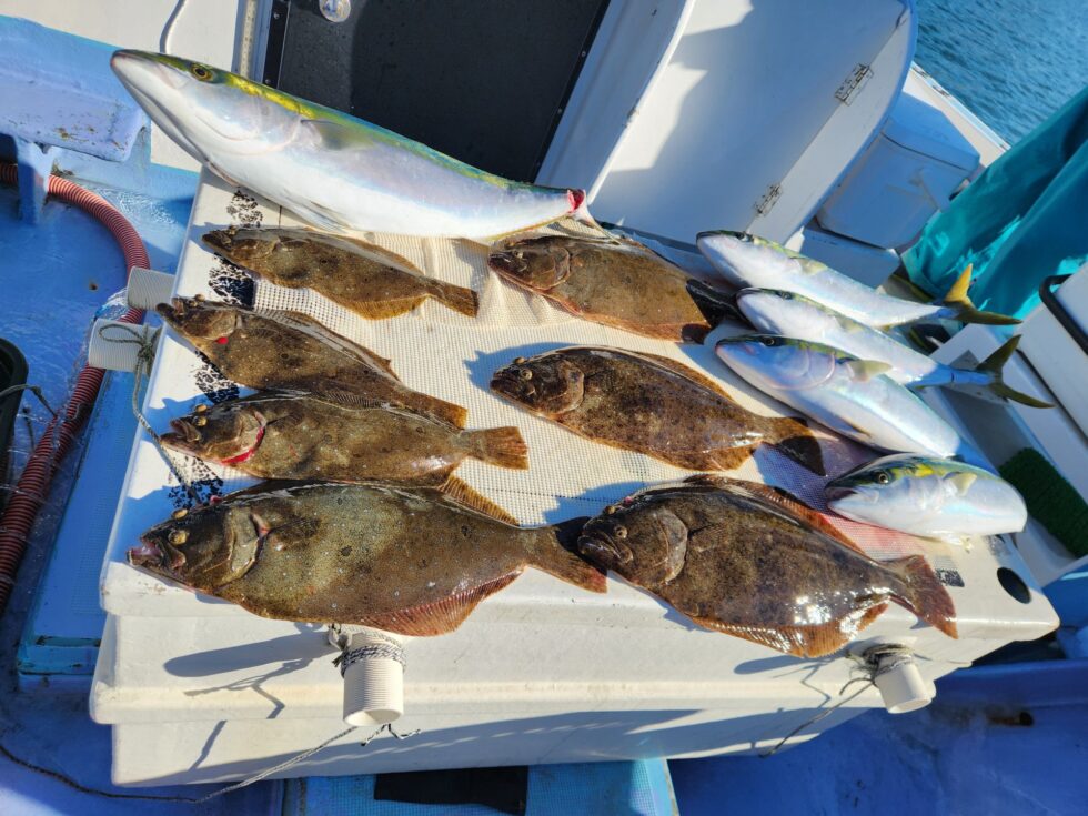 好天に恵まれ好調です!肉厚ヒラメ、青物はぼこぼこタイムありましたよ。