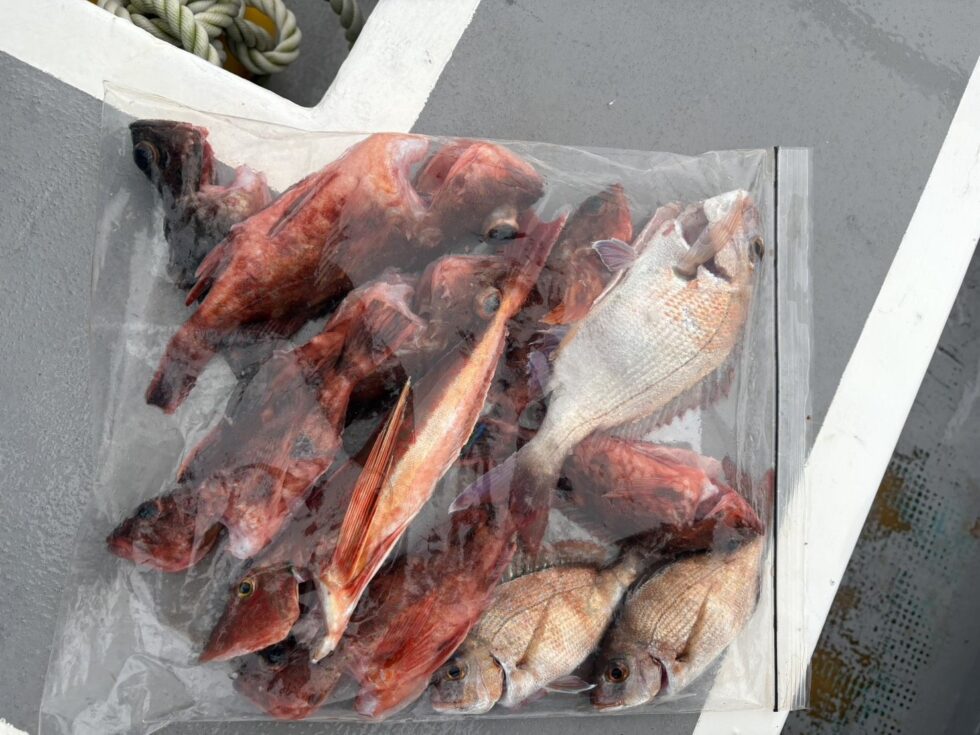 ウタセ五目船、大人1人9,000円、中学生まで7,000円 釣り座先着順 活きウタセエビの餌付 仕掛けオモリ販売あり