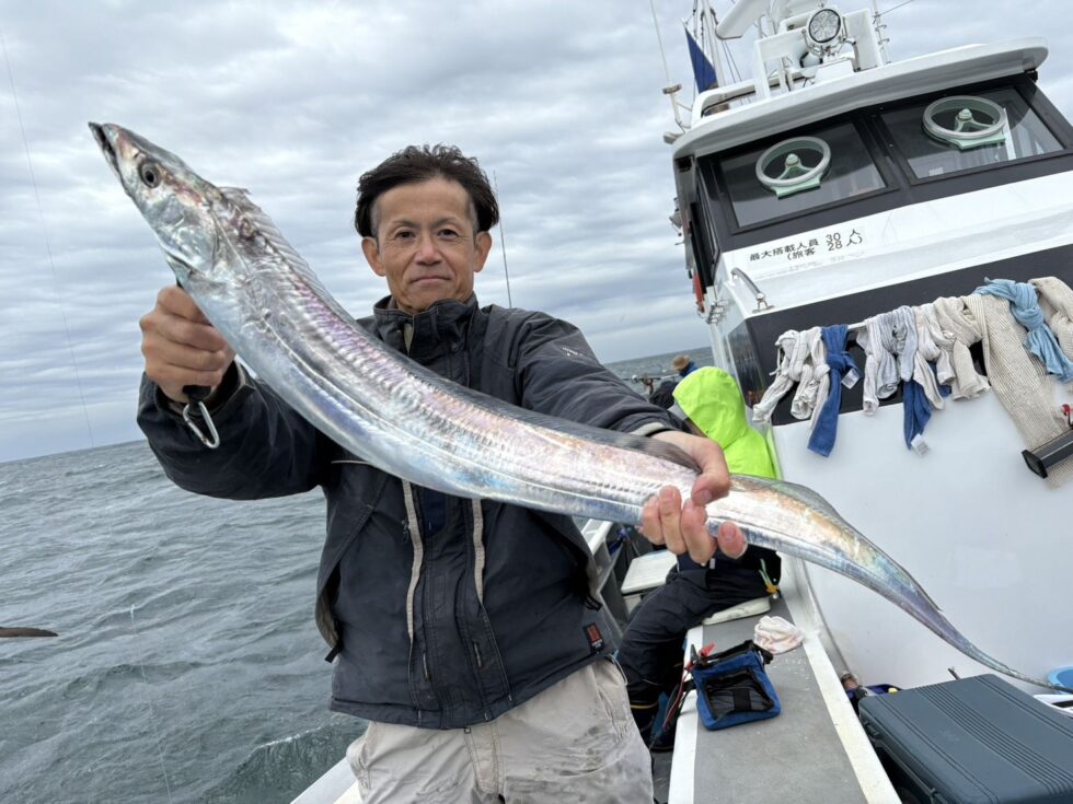 今日と明日は釣りビジョンさんの撮影でシマノフィールドテスター吉田昇平さんご乗船!開始いきなり大型タチウオゲット!伊良湖水道タチウオ見事に攻略でした。