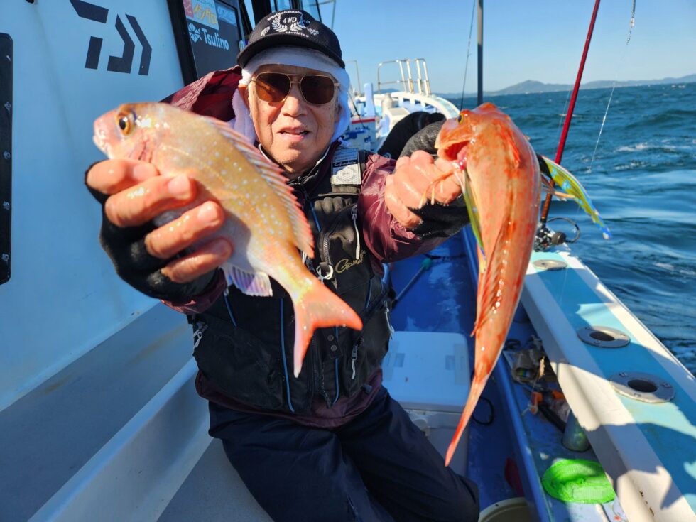 活きウタセエビを使用したウタセ五目釣り、ライトタックルで楽しむ一つテンヤ釣り、ともに予約受付中です。