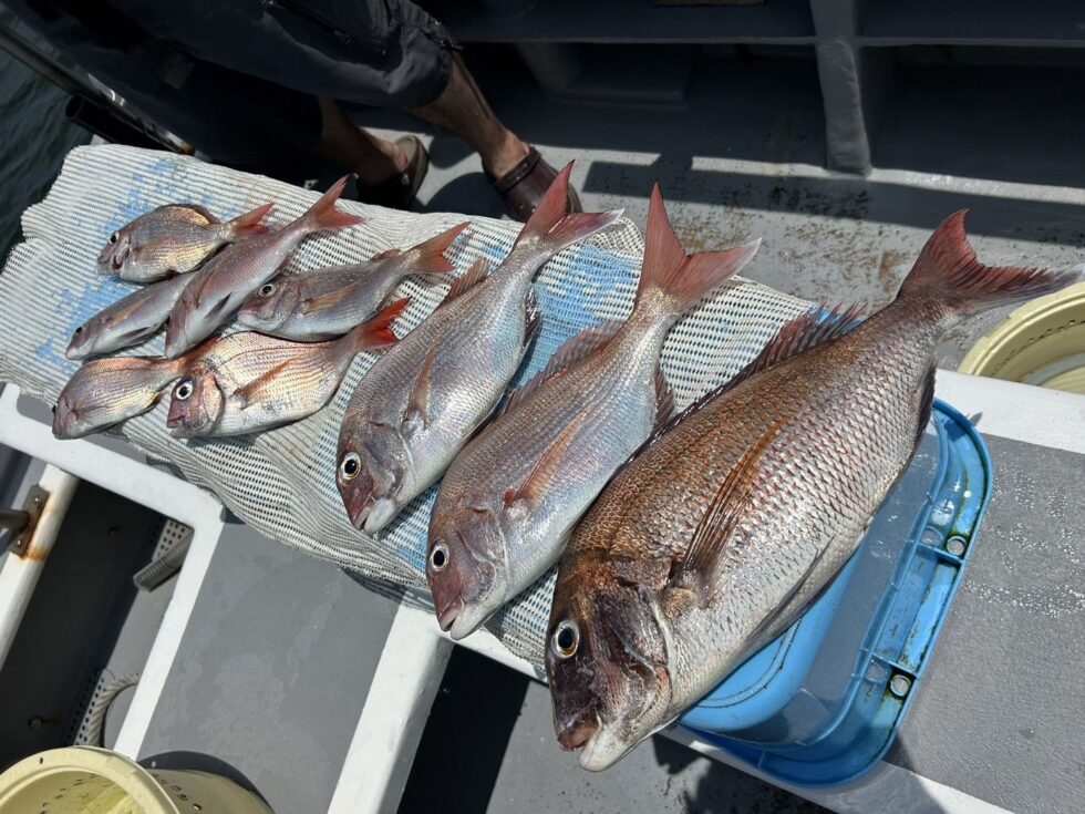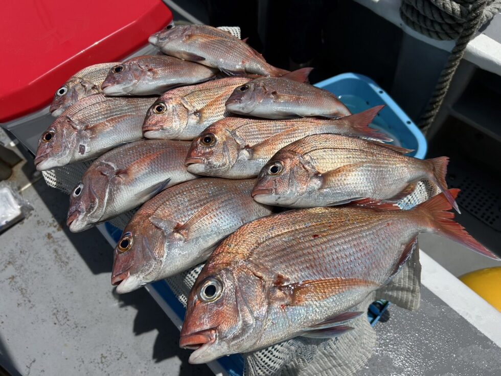一つテンヤ、マダイ爆発!明日(日)も出船確定してます!空き多数、朝の飛び入りOKですよ、