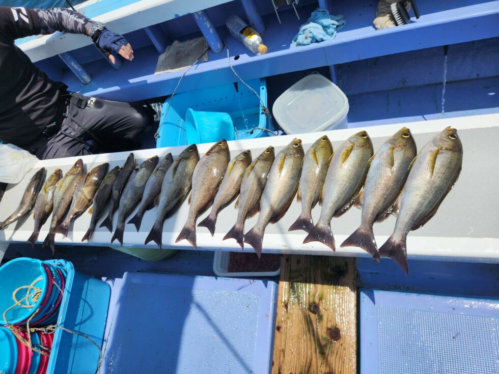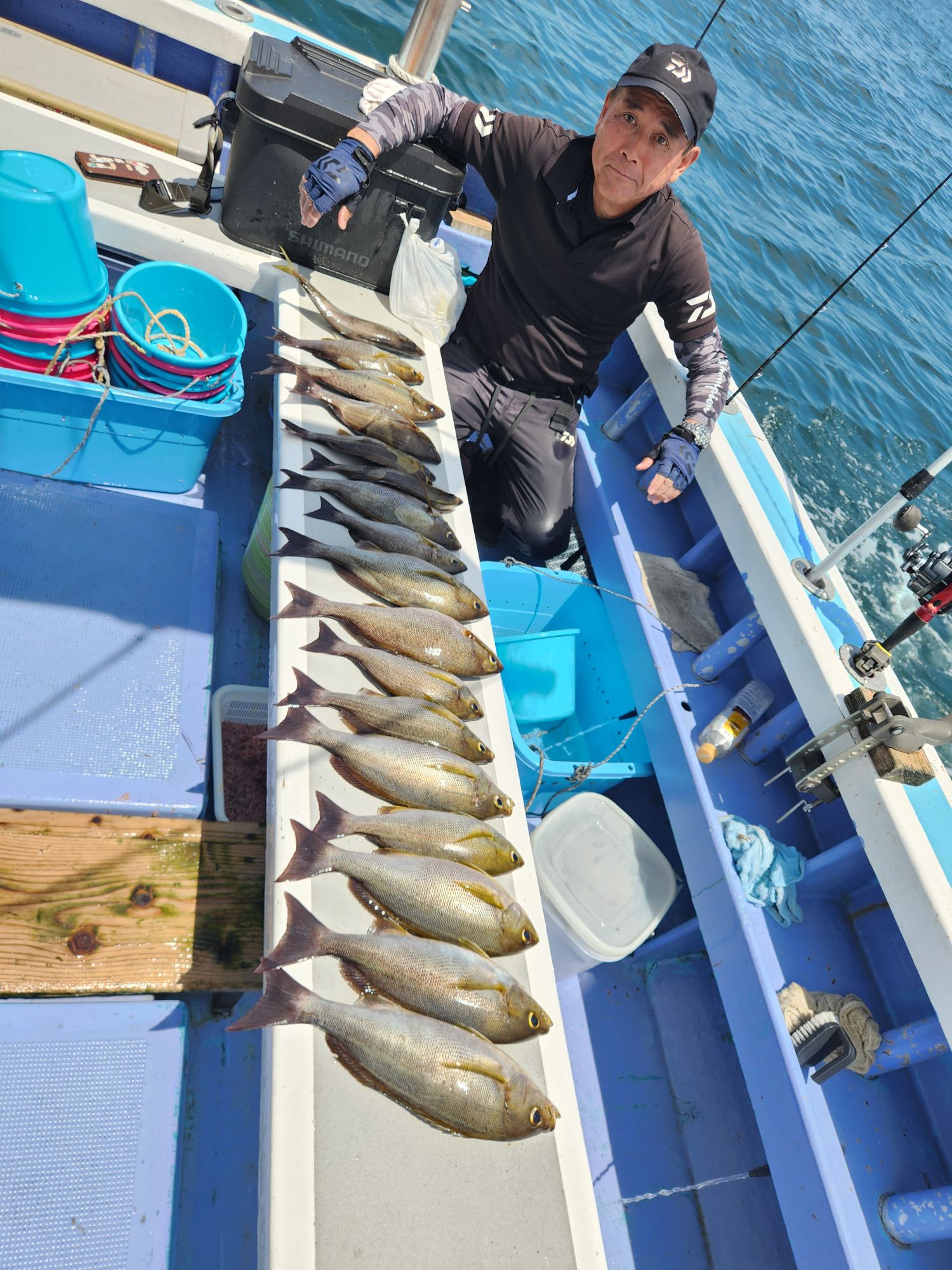 大山沖イサキ釣り、一つテンヤ真鯛釣り、午後ショート便キス釣り、予約お待ちしてます