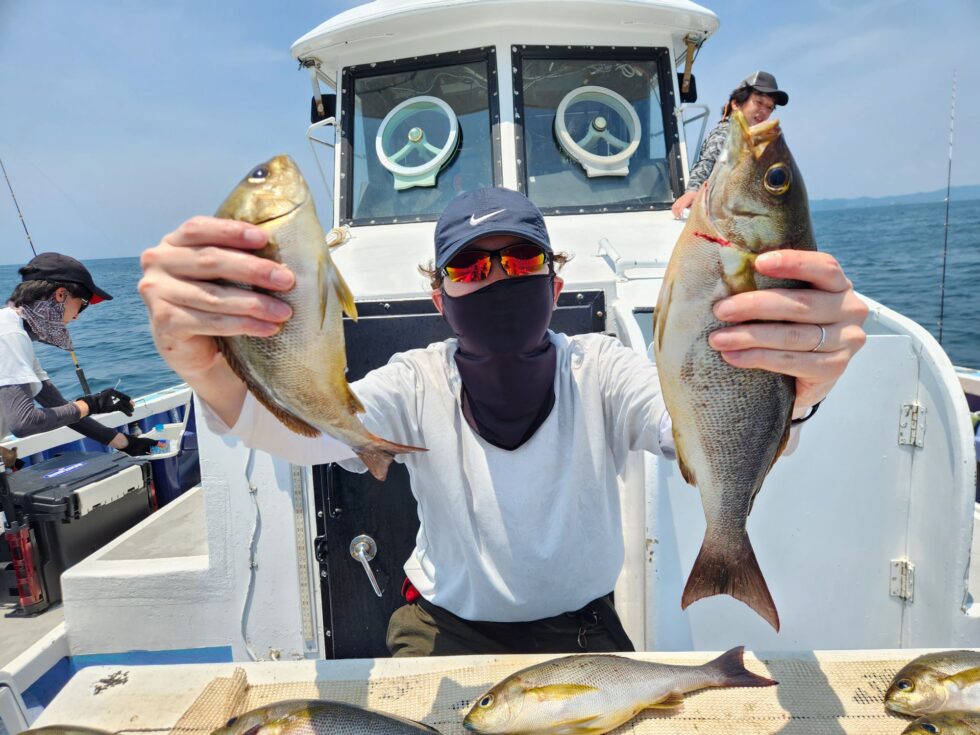 大山沖イサキ釣り、一つテンヤ真鯛釣り、午後ショート便キス釣り、予約お待ちしてます
