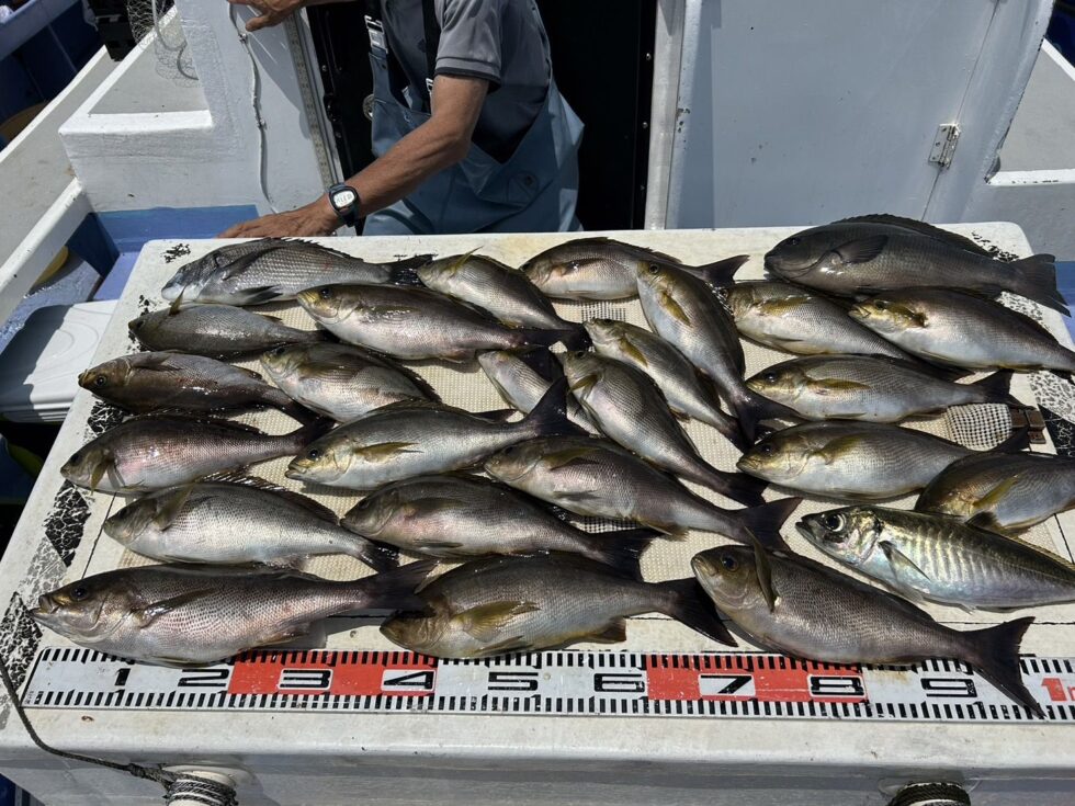 連日ジャンボイサキが凄いっ!!サイズ抜群イサキ大チャンスですよ!大アジのゲストも!明日からも非常に楽しみです、かなり空き多数、朝の飛び入りOK