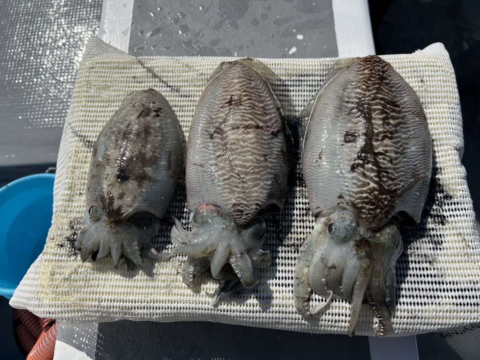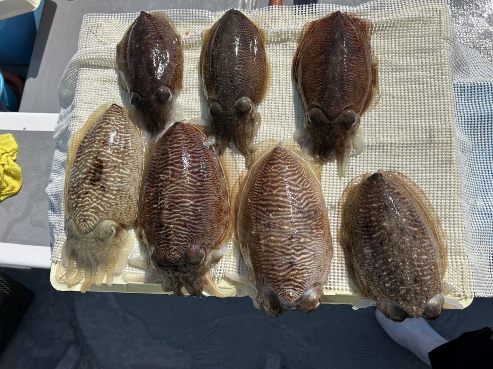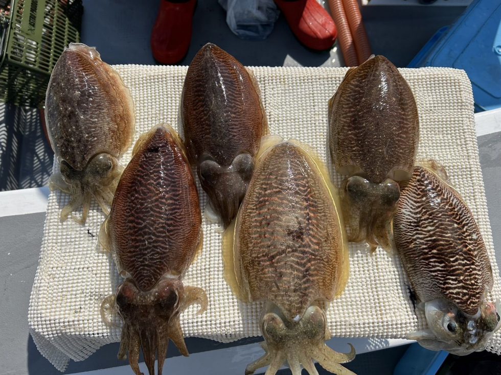 釣って良し、食べて良し、恒例コウイカ釣り、絶品につきリピーター続出中です!イカ墨パスタ、刺身、天ぷら、肝炒め、釣り師の特権ですね。