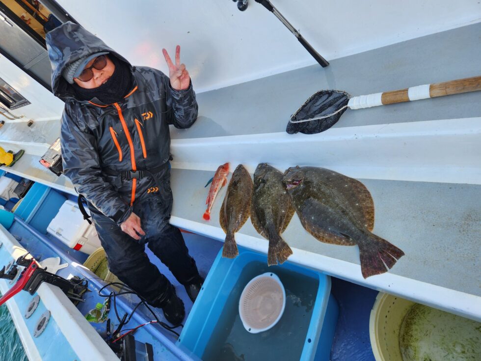 1/3(土)初釣り!泳がせヒラメ最大71㎝!コウイカ船