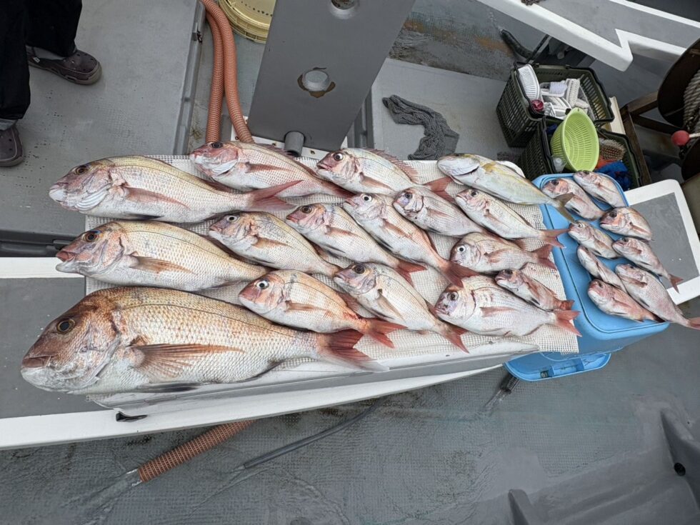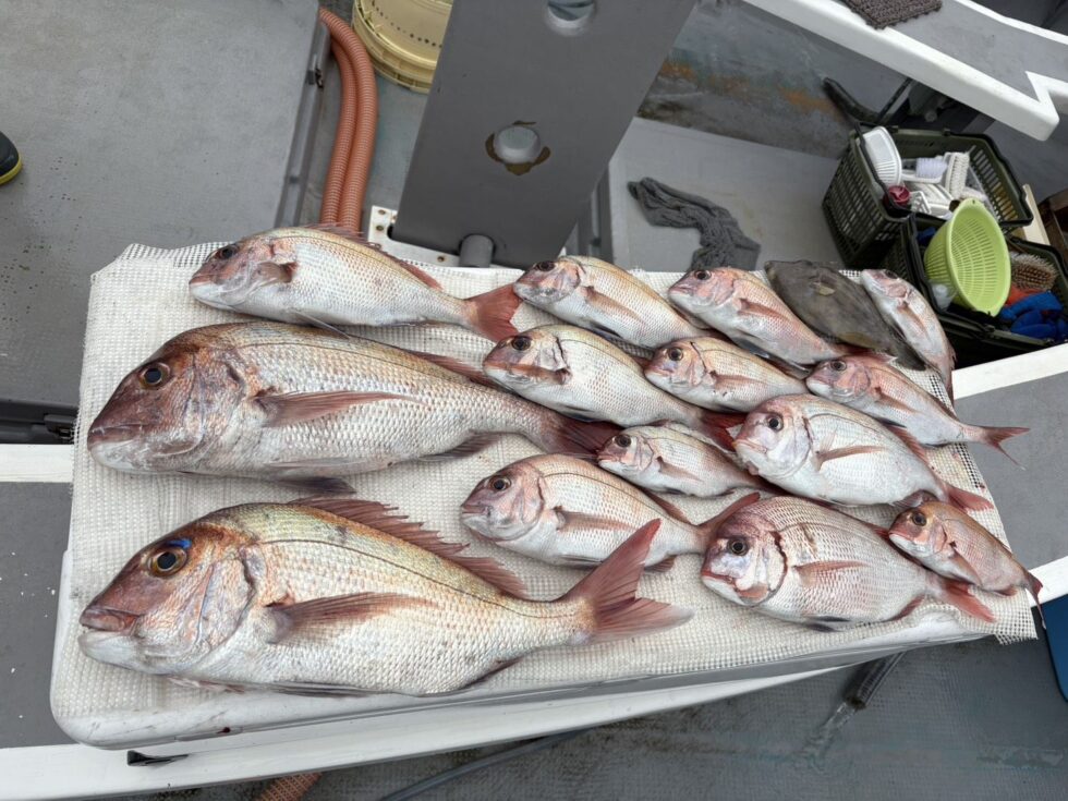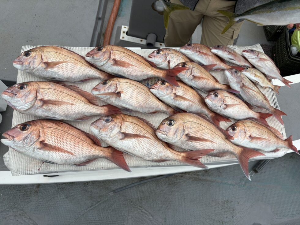 真鯛最大58㎝、トラフグ、カンパチ、ハマチ