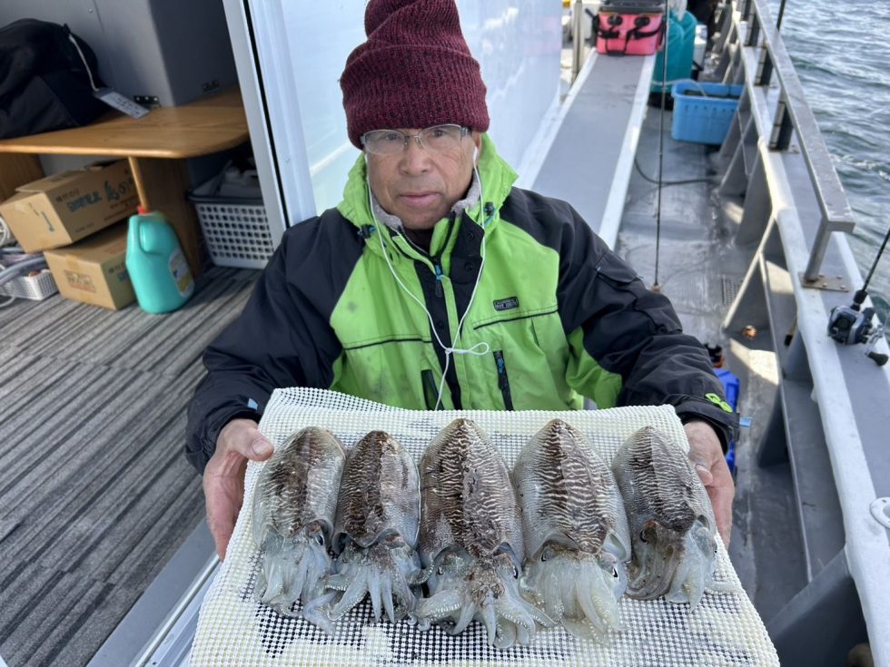 忠栄丸恒例コウイカ釣り連日凄いですよ。このチャンスに是非出掛けて下さいね。明日(木)も出船確定しました!朝の飛び入りOKですよ