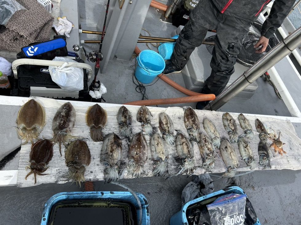 コウイカ爆発トップ21杯過去最高釣果達成!乗船者5人中4名様が10杯超えのハイレベルな釣果達成。