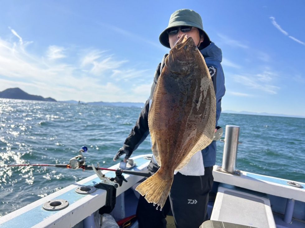 ヒラメチャンス!活きイワシのエサでヒラメとの駆け引きが面白いですよ。同じポイントにて青物も回遊中です。