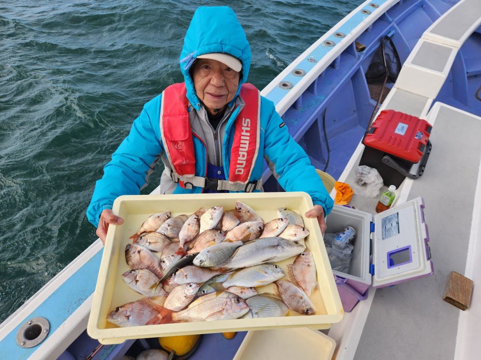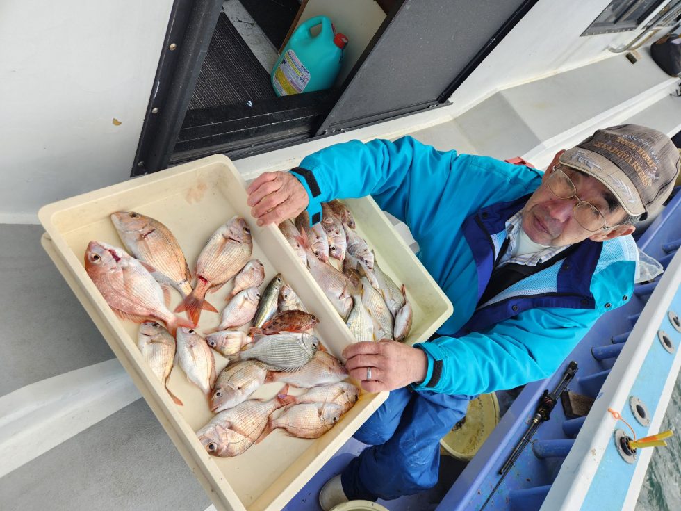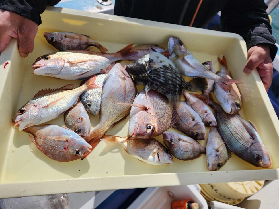 活きウタセエビたっぷり積み込んで出船!今日は風強く近場での操業!多彩な釣果で楽しめましたよ。