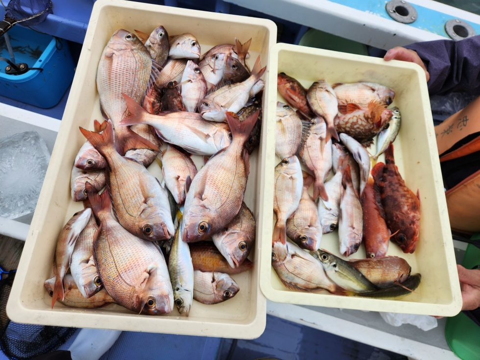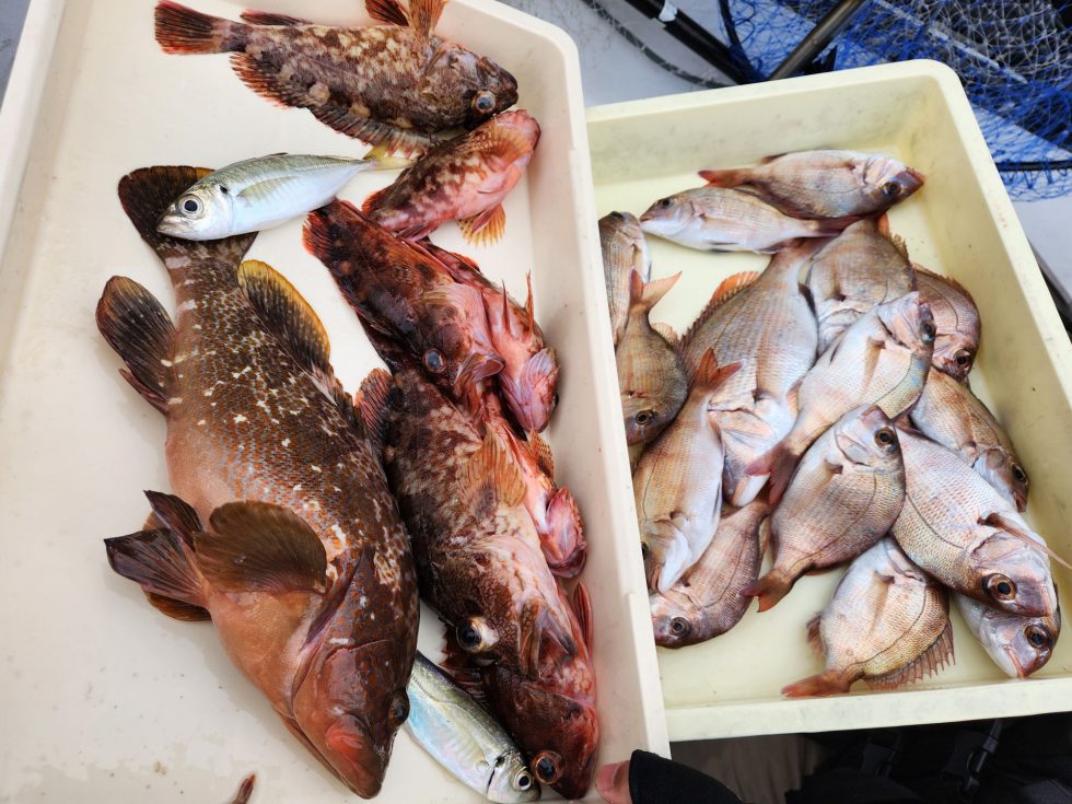 小鯛入れ食い、キジハタ、カワハギ絶好調、カサゴ良型、マアジ