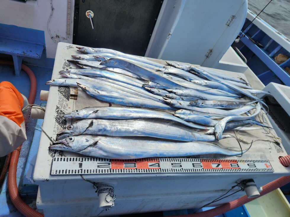 午後ショート便タチウオも出船中!午後便は港前釣行、伊良湖沖テンタチの練習にも是非!天秤仕掛け可(オモリ50号)サンマ餌1パック付(追加有料)、テンヤ可(テンヤ40~50号)イワシ餌販売あり