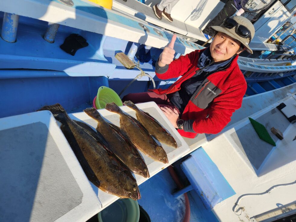 ヒラメ竿頭4枚 絶好調ー!他クエ、ハマチ、クロソイ
