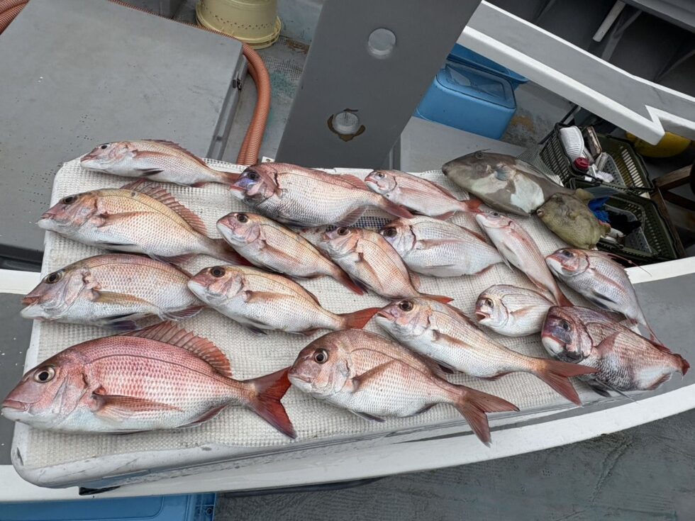 真鯛絶好調ー!今日も活性高く非常に楽しめました!ライトタックルでゲーム感覚、リピーター続出中ですよ。