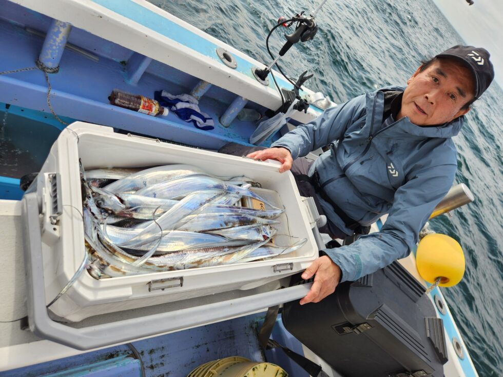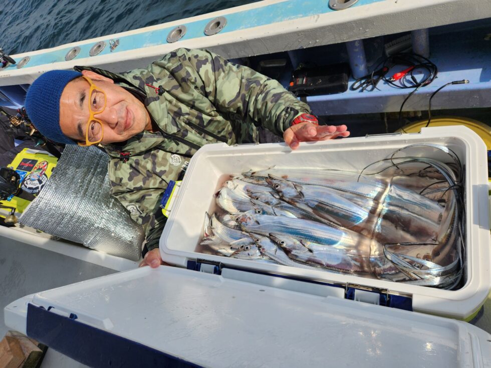 タチウオ相変わらず入れ食い状態!1日当たりっぱなしで皆さん凄い数を釣り上げてましたよ。テンヤ専門でゲーム性を楽しみ、数を伸ばすには手返しが重要てす、今ならのんびりと楽しんでいただいてもお土産バッチリ釣れますよ。明日(日)も空き多数、朝の飛び入りOKですよ