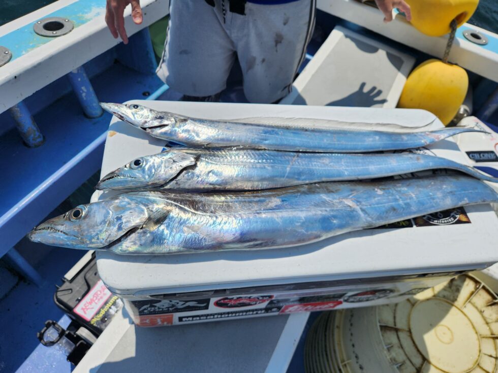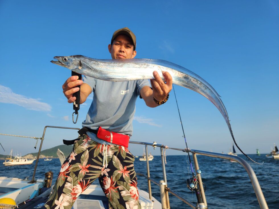 ゲーム性あり人気のテンヤタチウオ、しっかり誘ってアタリをだして下さい!