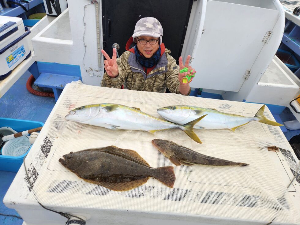 ヒラメ最大58㎝、ワラサ、ハマチ、マゴチ、トラフグ
